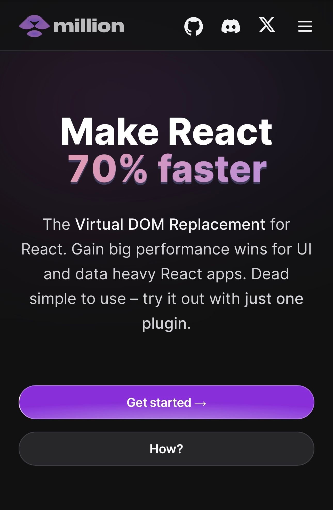 Million.dev is another cool one that basically makes your react project 70% faster. It replaces the virtual DOM of your project therefore, making it lightning fast with what they have under the hood. We’ve tried this one and think it’s been increasingly better to use inside our projects.