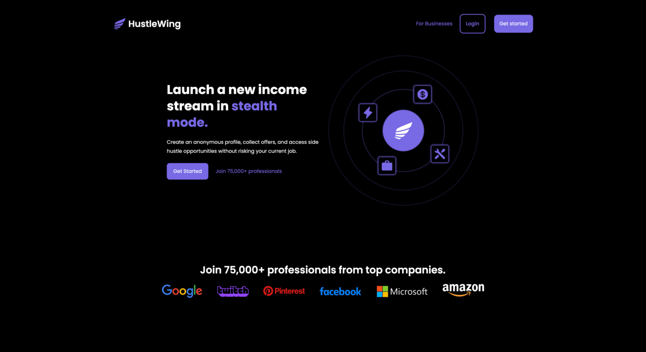 Hustlewing.com is a place where people can go to get offers from companies to do side work with them without them knowing your identity. It is a pretty cool platform to find that next side gig.